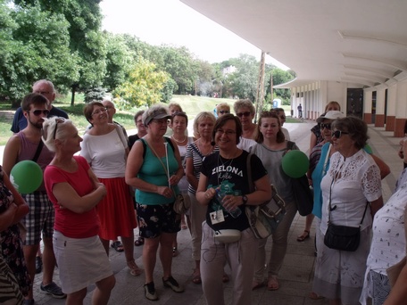 Dzień wycieczki pokrywał się z inną, coroczną, popularną imprezą, czyli maratonem "Dbam o Zdrowie". Jako że wiązało się to z utrudnieniami w poruszaniu się po centrum, nie spodziewałam się zbyt wielu uczestników. Na miejsce spotkania, czyli pod Muzeum Kinematografii, jednak przybyło prawie 100 osób. Spacer rozpoczęliśmy od historii rodziny Scheiblerów i Wodnego Rynku, następnie przeszliśmy do dawnego ogrodu fabrykanckiego - dzisiejszego Parku Źródliska II. Cały wpisany jest do rejestru zabytków. Podziwialiśmy tam pomniki przyrody: m.in. okazy pięknych dębów, miłorzębu dwuklapowego, platana klonolistnego. Zachwyt wycieczkowiczów wzbudziła również odrestaurowana altana chińska i romantyczna grota skalna. Jako, że tematem wycieczki był miks funkcji gospodarczej i rozrywkowej tej zielonej przestrzeni, nie zabrakło historii o filmach (m.in. "Rozbijemy zabawę" Romana Polańskiego, wówczas studenta pobliskiej szkoły filmowej) czy też o wystawie ogrodniczej w 1896 roku.
